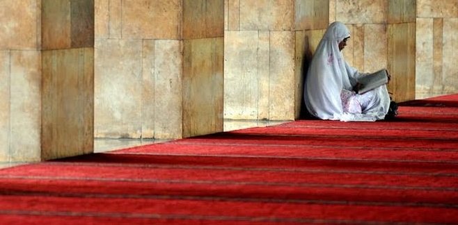“A woman should pull herself close together in prostration.” (Ibn Abī Shaybah)
